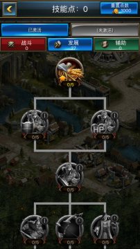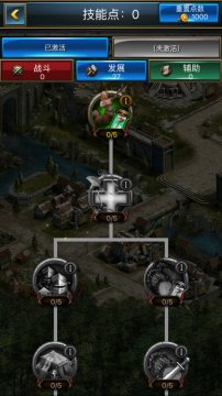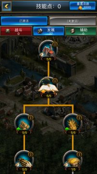 1. 点满”加速建造”:这个技能是发展线的第一个技能,不点也不行。但是点满可以使建筑物的升级时间缩短,非常万用(升等1级增加0.5%,最大等级5) 。
