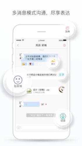 支持多种消息类型,如:文字/语音/图片/文件;支持多种消息提醒模式,如:提醒/不提醒/仅@提醒