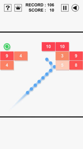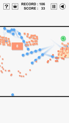 拾取绿色的圆则会增加弹球的数量。