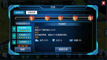 日常任务在指挥官达到14级时解锁,日常任务分为1-5星,星级越高奖励越丰厚。日常任务的奖励还与指挥官等级有关,所以当指挥官没有主线任务时(等级比较高了),再去做日常任务,可以获得比较大的收益。
