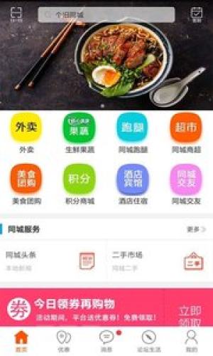 主要功能模块有:美食外卖、同城跑腿、本地商城、同城头条、同城服务等。