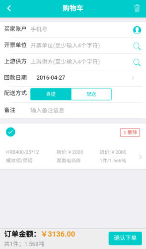 大大买钢是由大汉电子商务有限公司推出的一款钢铁交易平台,支持帮下单、合伙人搜索、商品购买、在线支付等多种功能,让你在手机上轻松买好钢。有需要的朋友,赶快来下载吧!