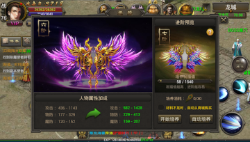 翅膀共有12阶,翅膀阶级越高,属性加成越高,外形越霸气!