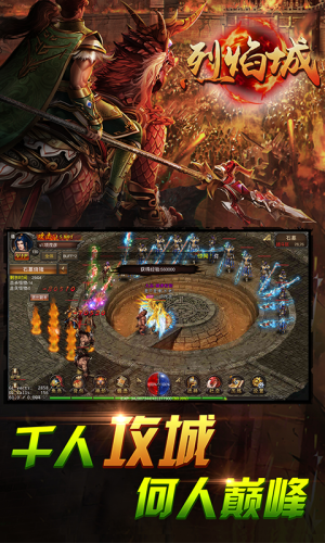 烈焰城,一款精彩的传奇RPG手游。游戏采用经典的传奇玩法,各种精彩的热门传奇竞技玩法随时上线,自由pk、热血攻城,万人团战等轻松开启,带你体验超燃的传奇手游!