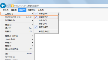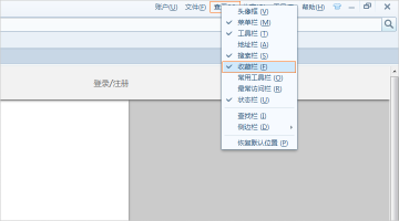 第一步:打开菜单“查看-工具栏”,勾选“收藏栏”。