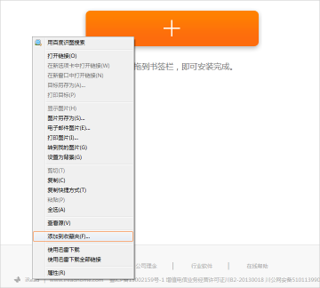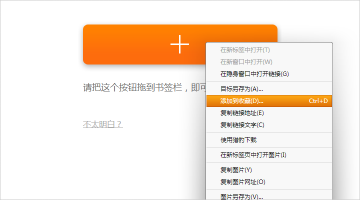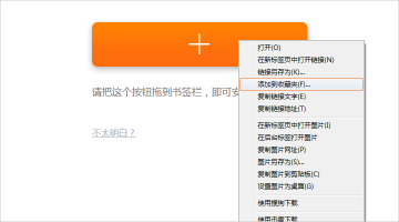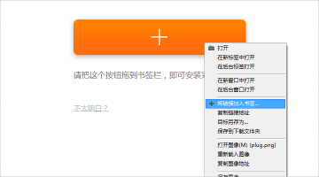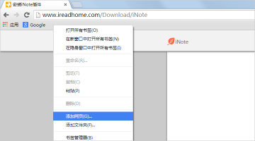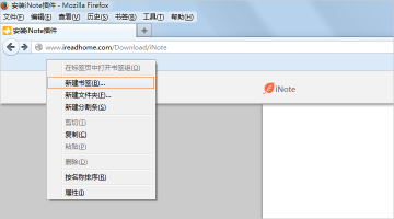 第一步:点击进入安装iNote插件页面,右键单击页面中按钮,在弹出框选择“将链接加入书签”。