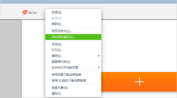 第二步:点击进入安装iNote插件页面,在页面鼠标右击,在弹出窗口,勾选“添加到收藏夹”。
