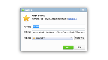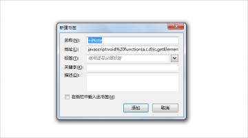 第三步:在弹出的对话框里,标题填写“+iNote”,并把第一步中复制到剪贴板的代码粘贴到网址栏。