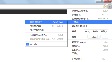 第二步:打开浏览器右上角图标“书签”,勾选“显示书签栏”。