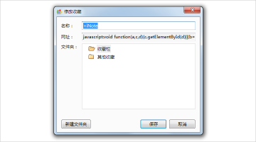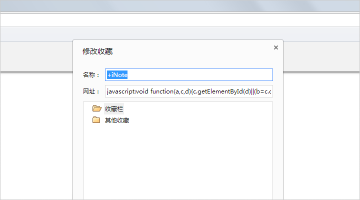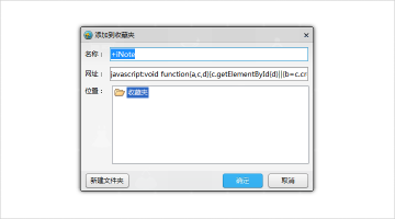 第四步:在弹出的对话框里,名称填写“+iNote”,并把第一步中复制到剪贴板的代码粘贴到网址栏。