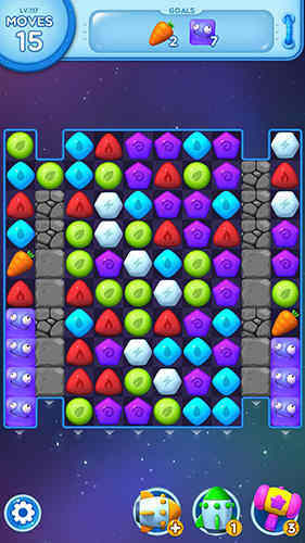 《小奇怪的银河》是一款益智消除游戏,游戏讲述了奥德利冒险的故事,奥德利非常的喜欢胡萝卜,他种植了很多的胡萝卜,直到有一天他的胡萝卜被偷走了。现在帮助我们的奥德利寻找他丢失的胡萝卜,完成关卡,直到寻找被抢走的所有胡萝卜为止!使用你的道具完成游戏关卡中的要求,得到更多的金币。
