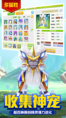 1、多达300个不同属性技能的相互克制以及效果,超越100个的精灵个体;