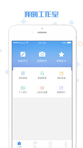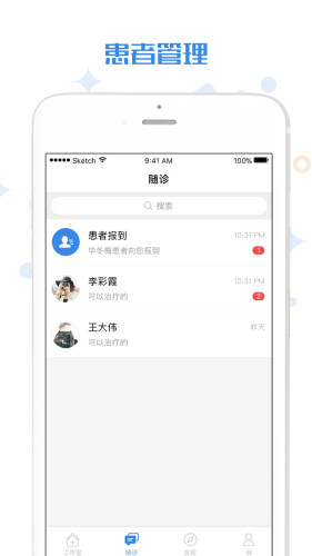 医生通过APP可以对就诊的患者进行管理和随访,患者只须微信扫一扫工作室名片即可。