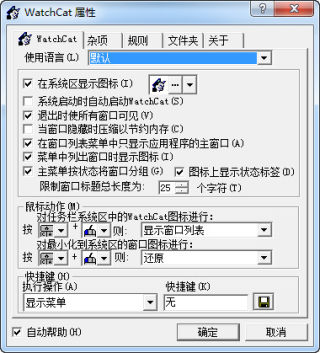 WatchCat的功能可不少,比如隐藏桌面图标、隐藏任务栏、快速打开任意文件夹、激活屏保、打开 "开始/运行" 对话框、打开/关闭 CD-ROM等。不过WatchCat最拿手的好戏,仍然是控制窗口。WatchCat可隐藏或最小化、最大化正在使用的窗口。其隐藏功能相当不错,窗口隐藏后,屏幕上不可见,也无法用Alt+Tab切换键来查看这些窗口,而且可以为WatchCat的菜单和隐藏的窗口设置访问密码,不知道密码就根本无法访问。WatchCatg还有让某些窗口在一定时间内没有动作时就自动隐藏、关闭或最小化的自动功能。同时,WatchCat还允许你使用指定的快捷键来完成最常用的操作。