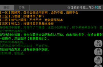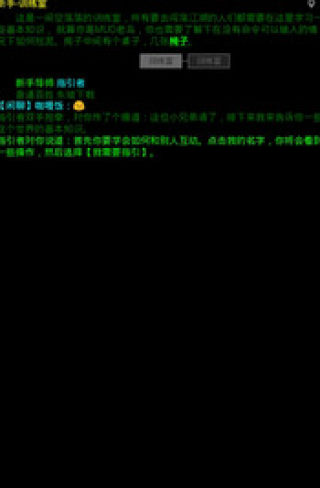 创建角色后会首先进行新手训练,指引你完成一些MUD游戏需要了解的操作和设置,这里就不详细说明了。