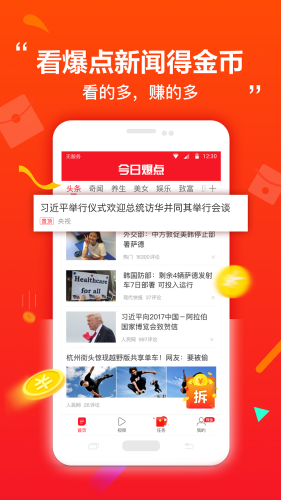 今日爆点安卓版下载,丰富的热点新闻,有趣的话题讨论,今日爆点app为用户带来精彩的资讯世界,看想看的了解更多未知,并且分享还可以的金币。