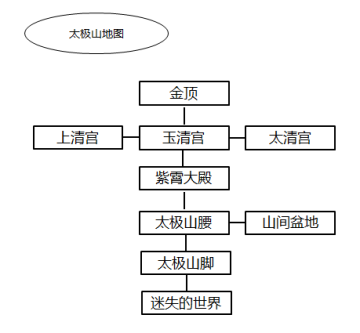 太极山脚:采药道人、马(驿站)、公告牌(太极七侠);