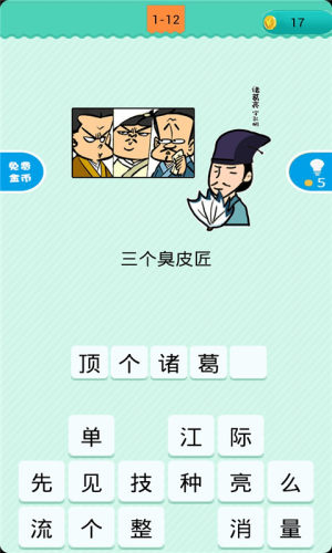 3、每个关卡提供了十八个文字供作答选择,答题正确即可通过此关