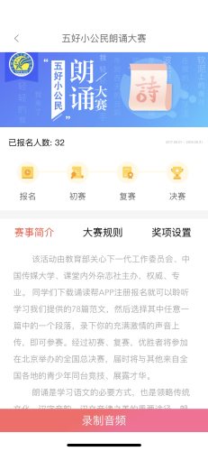 诵读帮app是一个可以进行范文试听、录音上传、系统评测、国内朗诵大赛参与的app平台。