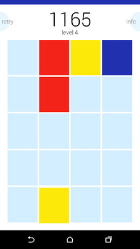需要智力的比拼!点击要消除的色块,相邻的色块如果颜色相同则会被一起消除,如果色块位置过高则会游戏失败。