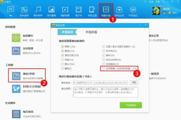 在功能大全中选择备份还原,找到需要备份的数据,然后点击开始备份