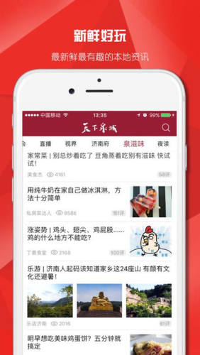 “让济南走向世界,让天下泉城形象更美”,天下泉城新闻客户端在传递权威、快捷、接地气新闻资讯的同时,还将致力于把泉城最美的自然景色、人文风貌、时尚变化等推向天下。