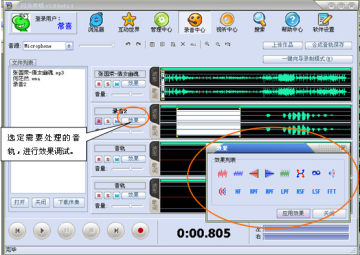 6、录制完毕后可以选定音轨进行效果处理,然后合成音轨保存。