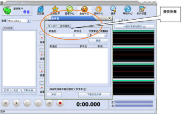 3、 点击左下角的“打开”按钮,打开所需要的伴奏文件。您也可以点击“下载伴奏”按钮在网站上搜索您所需要的伴奏。