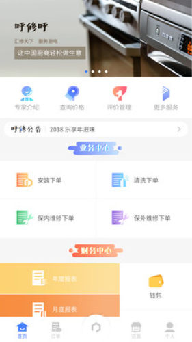 “呼修呼”是一款针对厨电行业特性量身定做的2B移动应用。包括维修公司老板端、维修公司工人端、厨电店面老板端、厨电店面员工端、厨电销售代理商端、厨电生产厂家端、共享技术专家端、业务员端等。