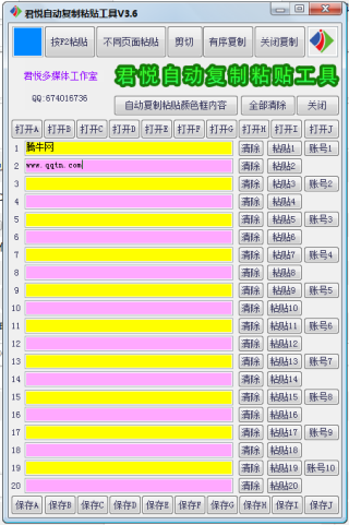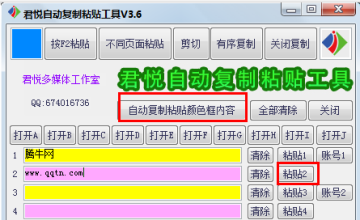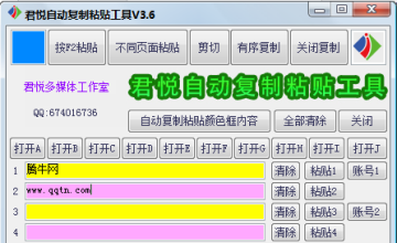君悦自动复制粘贴工具(网页快速复制)是是一款绿色免费的由君悦多媒体工作室开发的文本或者文件的自动复制粘贴工具。软件功能强大,具有文件复制,剪切,粘贴功能。