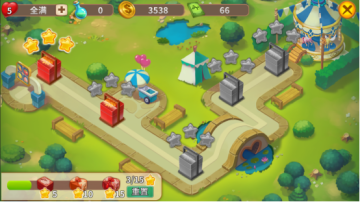 点击旋转木马即可进入以上关卡视图。如同游览游乐园一般,我们需要从门口一关一关像游乐场更深处的关卡进行推进。随着关卡的推进,难度也会直线上升。