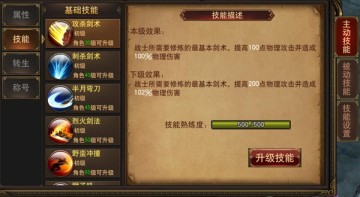 技能分为很多等级,要想升级技能,只能反复用释放这个技能,等技能的熟练度满了之后,玩家才可以升级技能。这里要特地说一下,说起升级技能,唯独道士的“召唤神兽”是最难升的,因为这个技能真是冷却时间太长了,不过难升也有难升的好处,召唤神兽技能一旦升到满级,宛如脱胎换骨,神兽的伤害和血量是成倍的往上涨。
