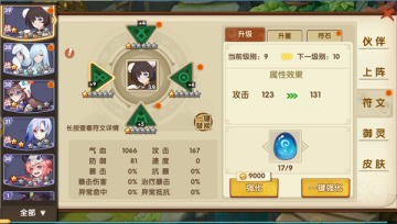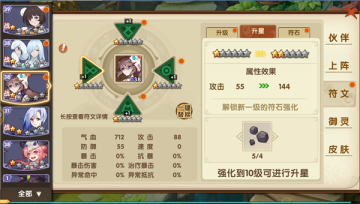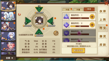 妖灵契的符文系统其实还是挺容易理解的,玩家在初始获得伙伴时,可以根据伙伴的等级用金币购买几个符文位置,并且升级。