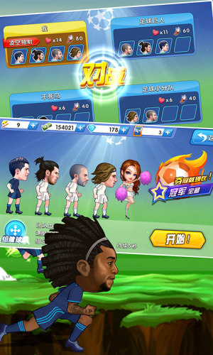 游戏中可为球员变换球衣可升级球员属性提供球员各项技能时间和跳跃次数,分无尽模式,闯关模式,多人模式,