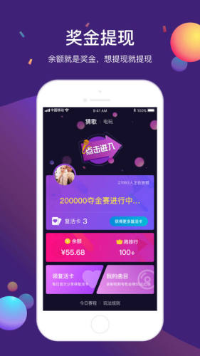 1、参与今日歌王夺金赛,猜对6首歌即可通关,当场瓜分奖金红包!