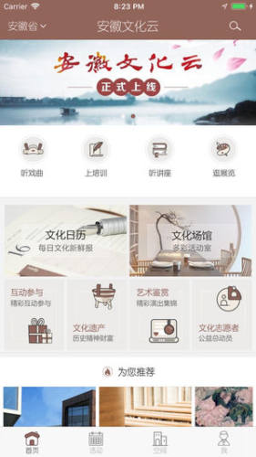 安徽文化云是一款聚焦文化领域,提供公众文化生活服务的交互互联网平台,现汇集安徽全部的文体活动、场馆资源。平台中集活动预约、空间展示、文化遗产等功能为一体,为用户提供便捷的文化品质生活服务。