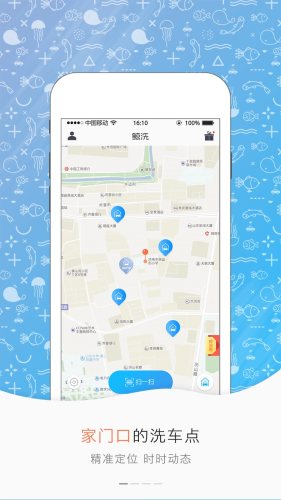 家门口的洗车点,精准定位,实时动态