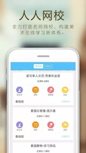 人人美术下载安卓版,为更多喜欢美术的小伙伴提供线上美术教学,人人美术app内含多中美术学习课程,让用户可以根据自身情况选择,欢迎下载。