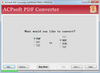 ACPsoft PDF Converter 使用了向导模式来一步步完成转换,也可以批量转换。另外还可以在转换后的 Word 文档中添加图片水印、页眉页脚等信息。