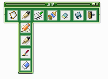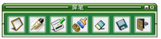 打开屏幕笔,发现界面就只有几个按钮。第一个是绘图和鼠标切换,第二个是笔型,第三个是线型,第四个是笔画颜色,第五个是清除屏幕,第六个是保存文件,最后一个是退出软件。