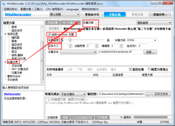 字幕设置——Mencoder字幕效果:可设置字幕高度(离底边距离,建议次低)、字体大小(建议3号)、字幕字体(注意:若字幕出来是一条横线请重新设置为中文字体;当视频编码采用“两次编码”时如果字幕出现问题可取消“两次编码”,用提高编码率的方法补偿);