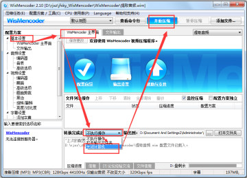 6.设置完成, 回到基本设置——WisMencoder主界面,点右上方“开始压缩”,并在“转换完成后”处选择“关闭计算机”(你不会坐在旁边看它压缩吧?)