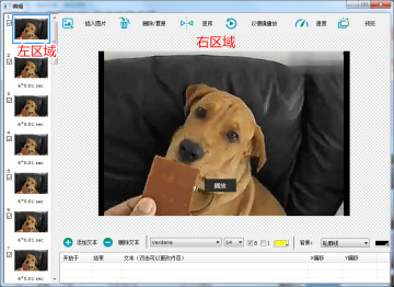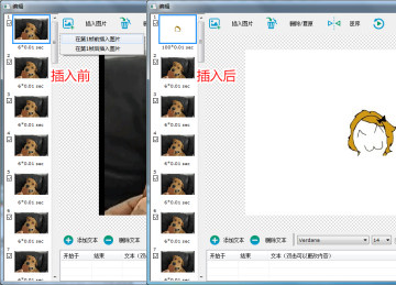 插入图片:左区域选择画面,可在所选画面前(后)插入另一个画面,或另一段gif动画。