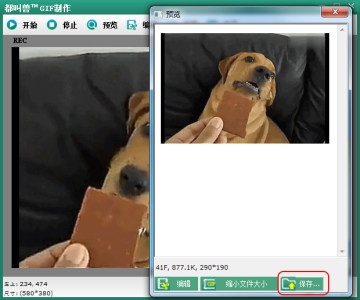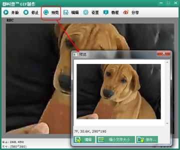 第五步:gif一直编辑到满意,可再次点击“预览”,再点击“保存”,把gif存放到硬盘中。