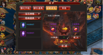 功能成长:宝石神精:用低级宝石合成高级宝石。锻魂道具:用低级锻魂丹合成高级锻魂丹。