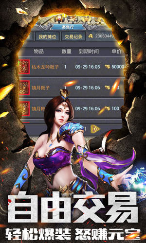 装备道具直接掉落,非绑可交易!离线挂机轻松体验!