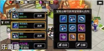 在主城界面中,点击铁匠路巴后在菜单中选择装备分解(里面的宝物页签),即可分解宝物!