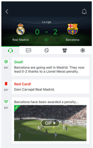 2、【即时比分】: 您可以获得所有联赛和赛事的所有足球比赛的即时比分,包括美国职业足球大联盟、英超、西甲、意甲、德甲、欧洲冠军联赛等。