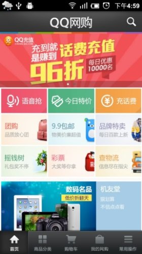 2.数码早晚市:与QQ网购、易迅网同步,每天多款特价商品等你来淘宝;