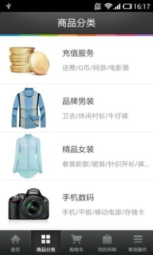 3.分类浏览:精心分类,快速找到商品,更有CP票、电影票、话费专属充值入口;